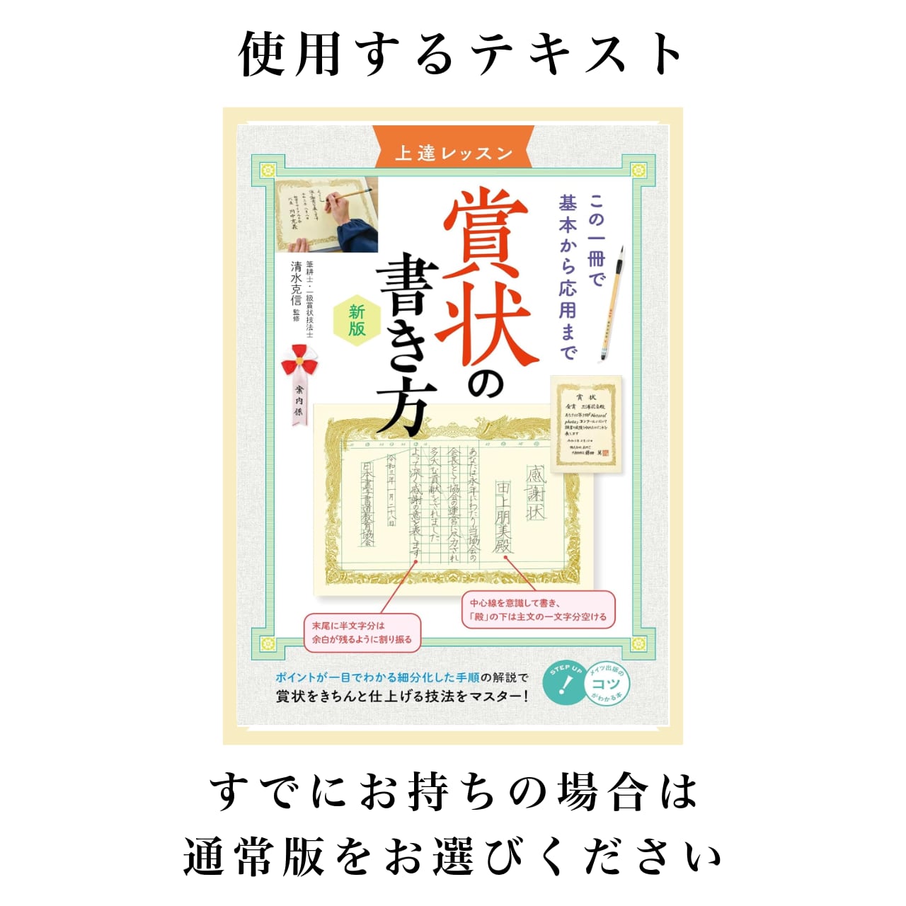 ※テキスト『賞状の書き方』が付属されています。すでにお持ちの場合は、付属されていない通常の『賞状筆耕プロコース【入門編】添削6回』をお申し込みください。